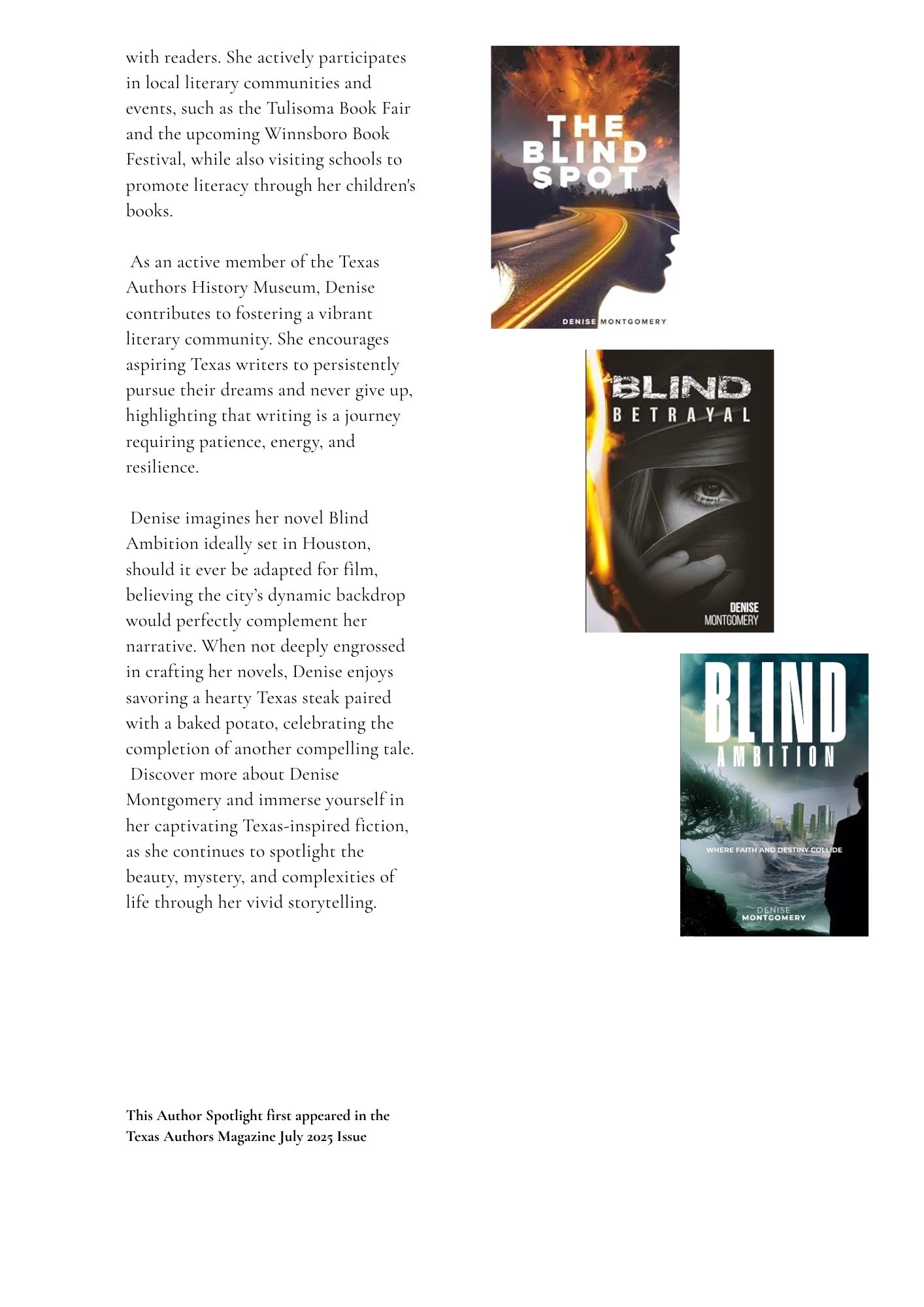 Texas Authors Magazine is proud to announce a brand-new feature debuting in our July 2025 issue—a dedicated Author Spotlight designed to showcase the incredible literary talent of Texas writers. This exclusive feature is part of our Level 4 Membership Program, offering authors a unique opportunity to share their stories, books, and creative journeys with a wider audience.