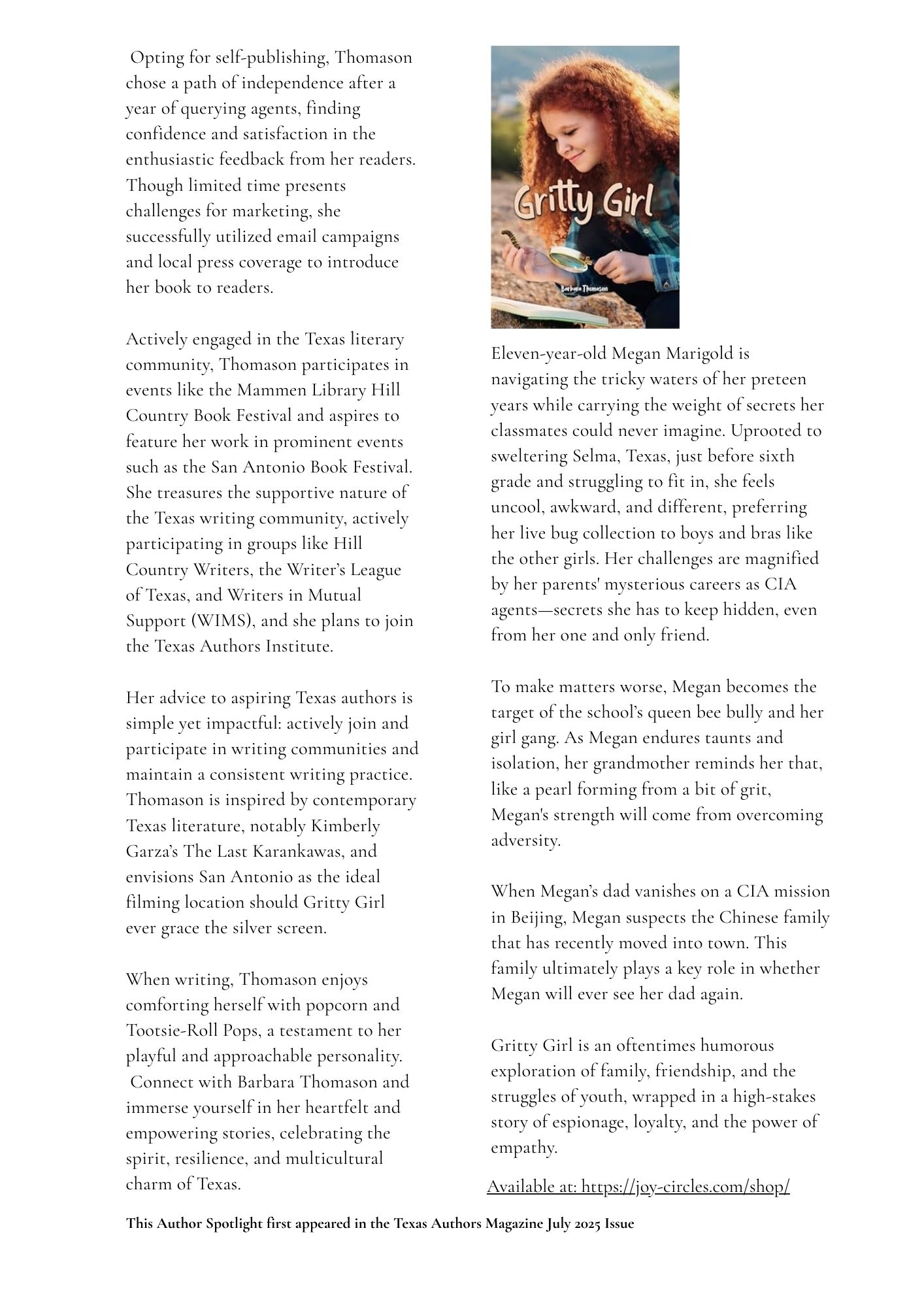 Texas Authors Magazine is proud to announce a brand-new feature debuting in our July 2025 issue—a dedicated Author Spotlight designed to showcase the incredible literary talent of Texas writers. This exclusive feature is part of our Level 4 Membership Program, offering authors a unique opportunity to share their stories, books, and creative journeys with a wider audience.